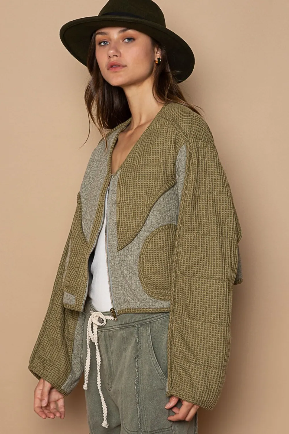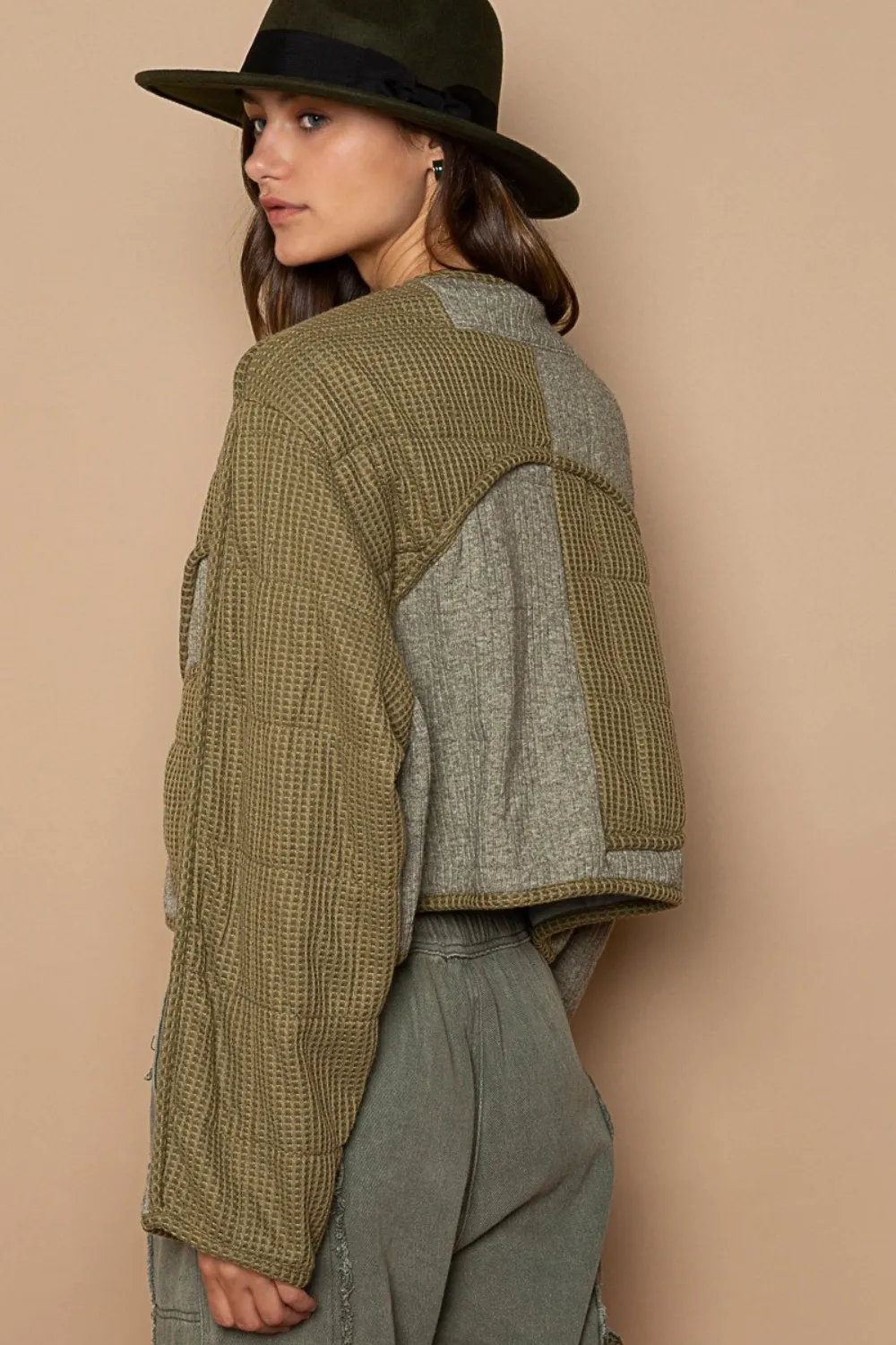 POL Quilted Knit Viding Detail Knit Patch Jacket